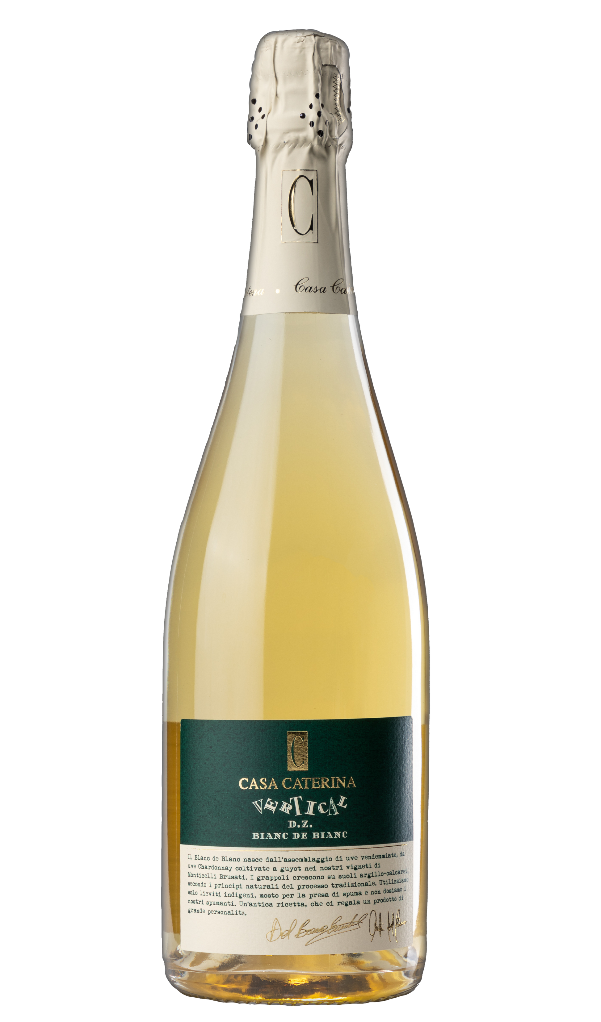 Lasciatevi avvolgere dalla storia, dalla passione e dall'arte della vinificazione con lo Spumante Metodo Classico Dosaggio Zero "Vertical". Questo vino, prodotto nel cuore del territorio bresciano, è il risultato di decenni di dedizione e amore per la terra e per le uve. Questo Spumante è una celebrazione della viticoltura, una testimonianza di tradizione e innovazione. Ogni sorso racconta una storia, un'esperienza sensoriale che parla di una terra, di un lavoro, di una passione. Coltivando uve Chardonnay sui suoli argillo-calcarei e combinando tecniche antiche con tecnologie moderne, abbiamo creato un vino che parla di noi, della nostra terra e delle nostre radici, e che dopo una paziente maturazione in bottiglia per ben 120 mesi, questo spumante Metodo Classico Dosaggio Zero sviluppa una complessità e una profondità uniche, regalando un'esperienza sensoriale avvolgente e indimenticabile.